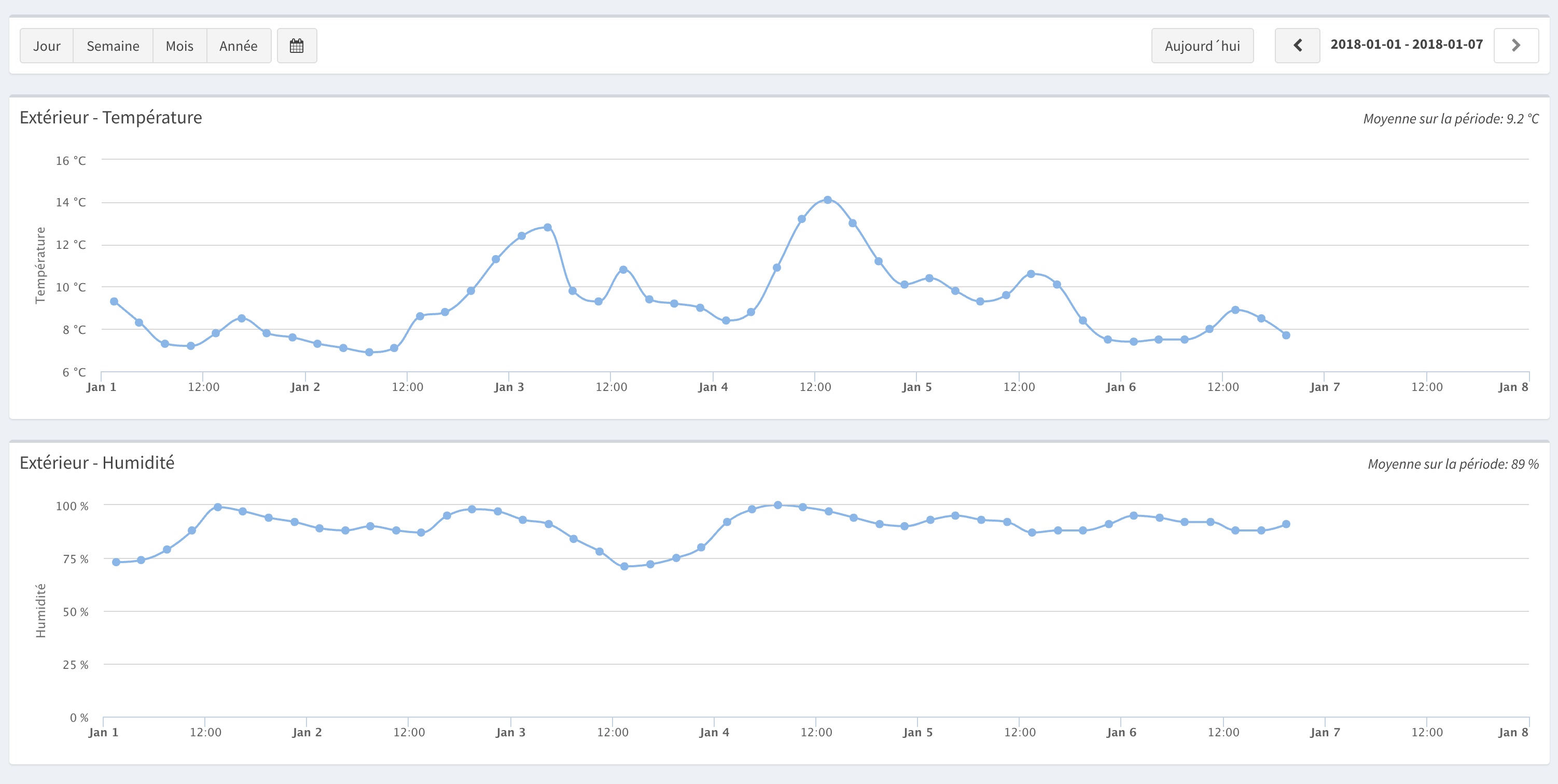 Pour compléter le système de valves connectées Netatmo, j’ai eu le plaisir de recevoir leur système de station météo individuelle et de mettre à disposition des résidents les mesures.